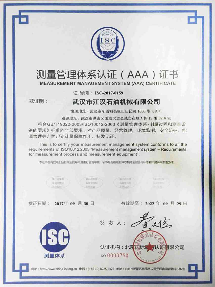 測量管理體系的目標是管理由于測量設備和測量過程可能產生的不正確結果而影響該組織的產品質量的風險。
